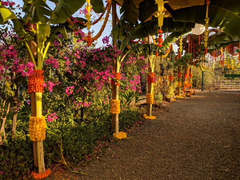 Gate of Bohemyan Blue Stay decorated for Marriage celebration Alibag